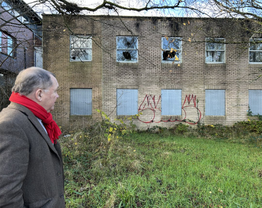 “Fe gymer amser i benderfynu ar y ceisiadau. Yna, bydd gan yr ymgeisydd hyd at bum mlynedd i adeiladu’r fenter newydd. Yn y cyfamser, mae’r adeilad yn edrych fel rhywbeth allan o dref adfeiliedig."